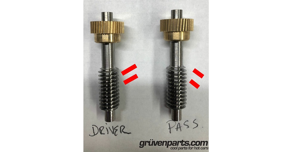 GruvenParts has created a brass fower folding mirror gear replacement with a thicker cross-section that is stronger and resists cracking. This brass spur gear is designed to be mounted to the OEM motor shaft using epoxy. (Note: currently, they sell only the replacement brass gears and not replacement motors.)