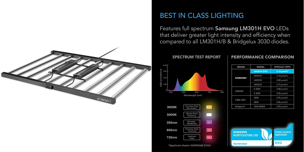 LED grow lights are by far the most energy efficient of all grow lights. They also last the longest and are the most environmentally friendly (fluorescent lights contain toxic compounds). Many LED grow lights also offer you the flexibility to control luminous output as well as the color or wavelength of the light.