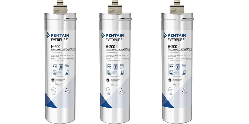 The Everpure H-300 filtration system can produce around 300 gallons of filtered water per cartridge. This means that on average you can have a whole year of filtered water before needing a replacement cartridge.