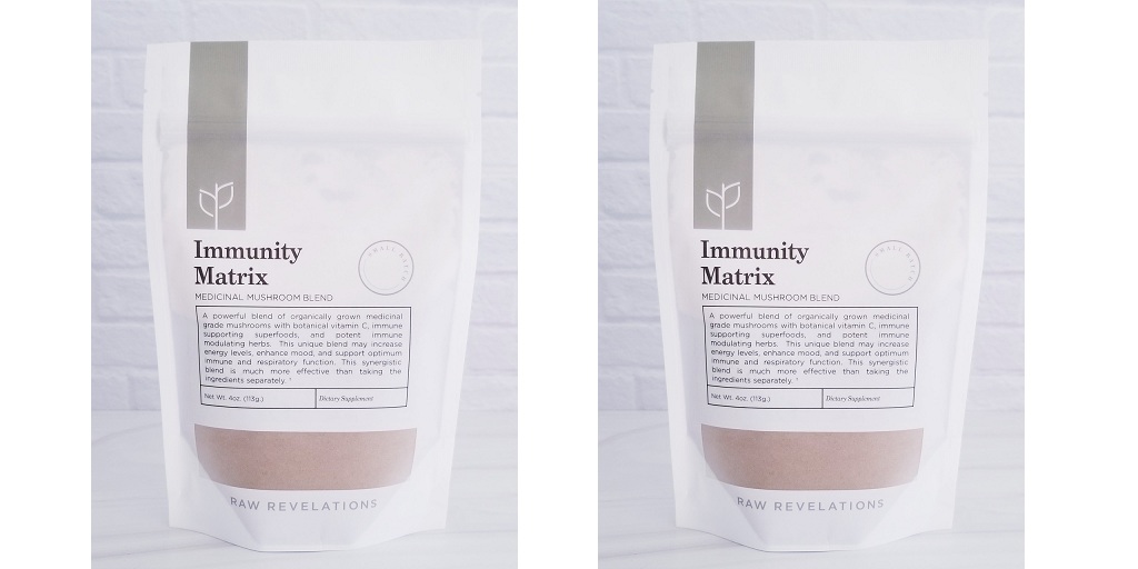 Immunity Matrix, from Raw Revelations, contains 8 different types of mushrooms, as can be seen by looking at the ingredient list. You can get this special supplement mixture, along with other superfoods, from the Raw Revelations website, where you may find supplements that can help improve your energy, your mood, and your immune and respiratory systems.