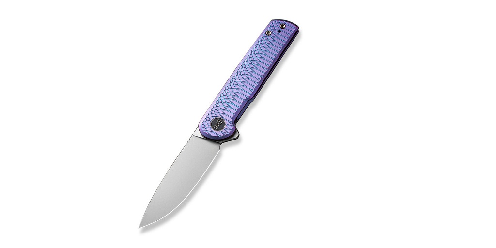 Like many other WE Knives, this one is available in multiple configurations but the top seller sports a titanium handle, a button lock, a flipper mechanism and thumb studs, and a basic CPM-20CV drop-point blade.